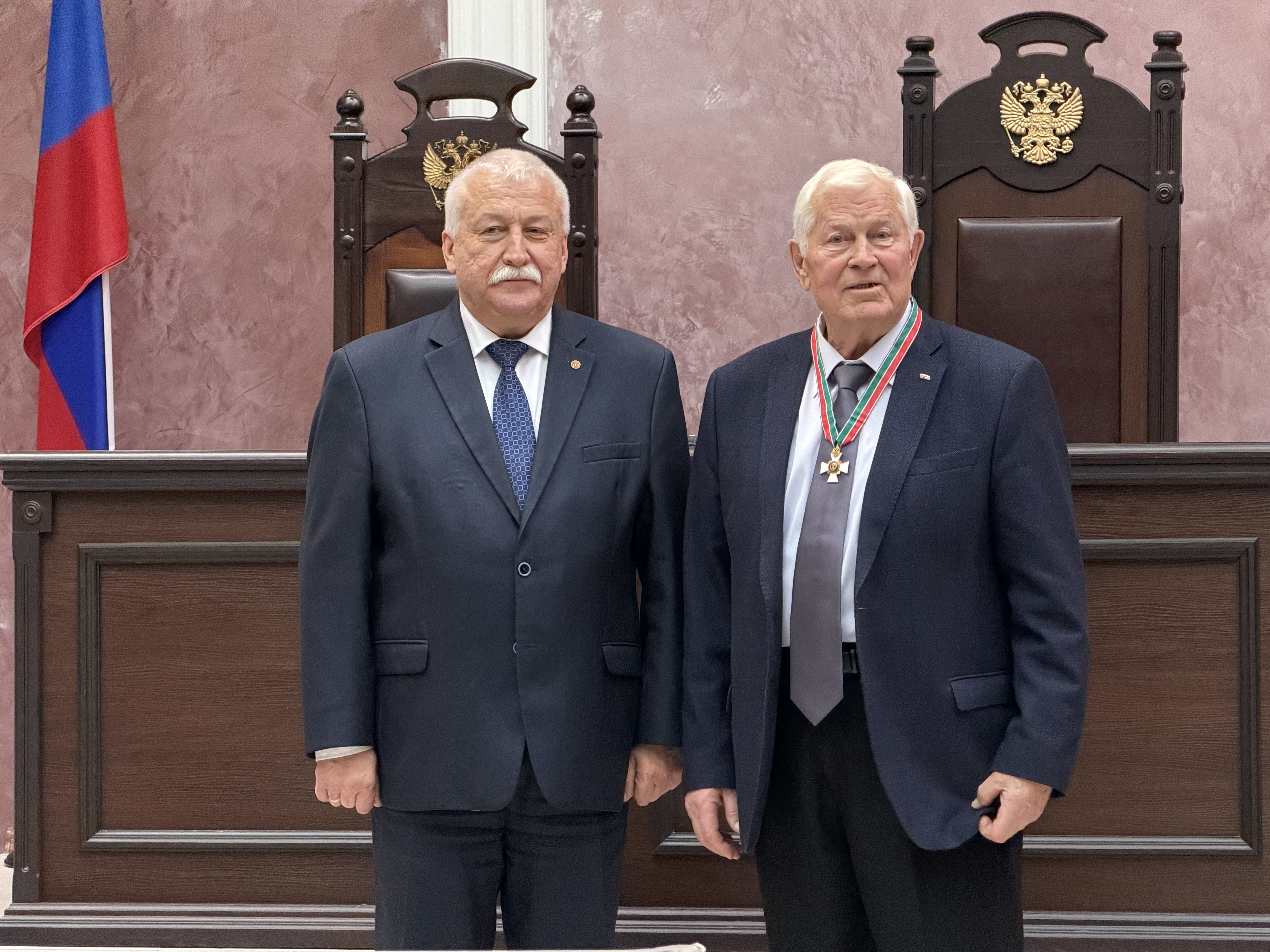 В Центральном окружном военном суде поддерживается добрая традиция чествовать ветеранов судебной системы, которые внесли значительный вклад в развитие правосудия. Так, 17 октября 2025 г. в Центральном окружном военном суде (г. Екатеринбург) состоялось торжественное собрание с участием Заслуженного юриста Российской Федерации, судьи высшего квалификационного класса, бывшего заместителя Генерального директора Судебного департамента при Верховном Суде Российской Федерации – начальника Главного управления обеспечения деятельности военных судов генерал-лейтенанта юстиции в отставке Петра Николаевича Украинцева, который более 10 лет (в 1992-2003 г.) являлся председателем Уральского окружного военного суда. В рамках мероприятия по поручению Председателя Совета судей России председатель Центрального окружного военного суда вручил Петру Николаевичу почетный знак Совета судей Российской Федерации "Ветеран судебной системы", которым П.Н. Украинцев за большой вклад в совершенствование правосудия в Российской Федерации, заслуги в защите прав и законных интересов граждан, многолетний добросовестный труд награжден в соответствии с постановлением Президиума Совета судей Российской Федерации. После окончания военно-юридического факультета Военно-политической академии им. В.И. Ленина Петр Николаевич более 13 лет прослужил в Забайкалье (членом военного трибунала Улан-Удэнского гарнизона, членом военного трибунала – помощником председателя военного трибунала Забайкальского военного округа, председателем военного трибунала Улан-Удэнского гарнизона, заместителем председателя военного трибунала Забайкальского военного округа), затем с 1989 по 1992 гг. – заместителем председателя военного трибунала Московского военного округа, 1992-2003 г. – председателем военного суда Уральского военного округа (Уральского окружного военного суда), 2003-2008 г. – заместитель Генерального директора Судебного департамента при Верховном Суде Российской Федерации – начальник Главного управления обеспечения деятельности военных судов. Именно полковником юстиции Украинцевым П.Н. 12 октября 1992 г. был издан приказ № 1, в соответствии с которым, во исполнение приказа начальника Управления военных судов № 019 от 2 октября 1992 г., Петр Николаевич вступил в должность председателя военного суда Уральского военного округа и сформировал состав суда по штату № 2/331. С этого времени начал работу первый судебный состав вновь созданного военного суда Уральского военного округа. С именем генерала Украинцева П.Н. в качестве руководителя окружного военного суда связаны наиболее динамичные и значимые периоды развития военно-судебной власти в Уральском регионе после воссоздания в областном центре Свердловской области (а впоследствии – в центре Уральского федерального округа) военного суда округа. Петру Николаевичу и его коллегам – судьям и работникам аппарата суда в короткий срок, в условиях недостаточного финансирования, в нелегкие 90-е годы, когда не только судебная система, но и вся наша страна испытывала общеизвестные трудности, удалось не только возродить судебную работу военного суда окружного звена на Урале, но и поднять ее на более высокий качественный уровень в подведомственных гарнизонных военных судах, а также укрепить авторитет судебной власти в воинских 
